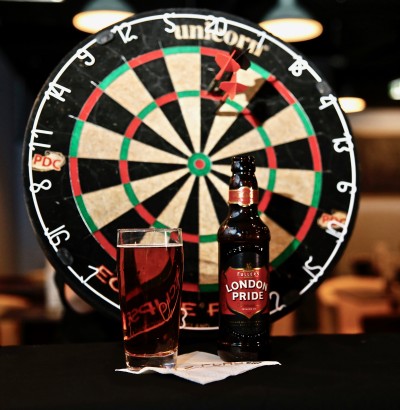Ein Präzisionssport, bei dem mit Pfeilen (den Darts) auf eine runde Scheibe (die Dartscheibe) geworfen wird.